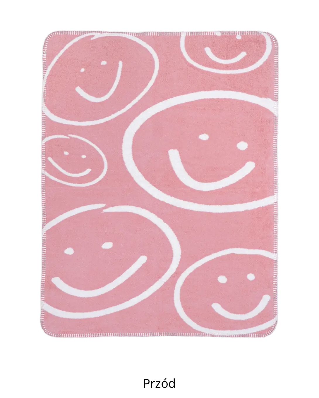 Koc bawełniany Little Clouds wzór Buźki brudny róż 75x100Cm
