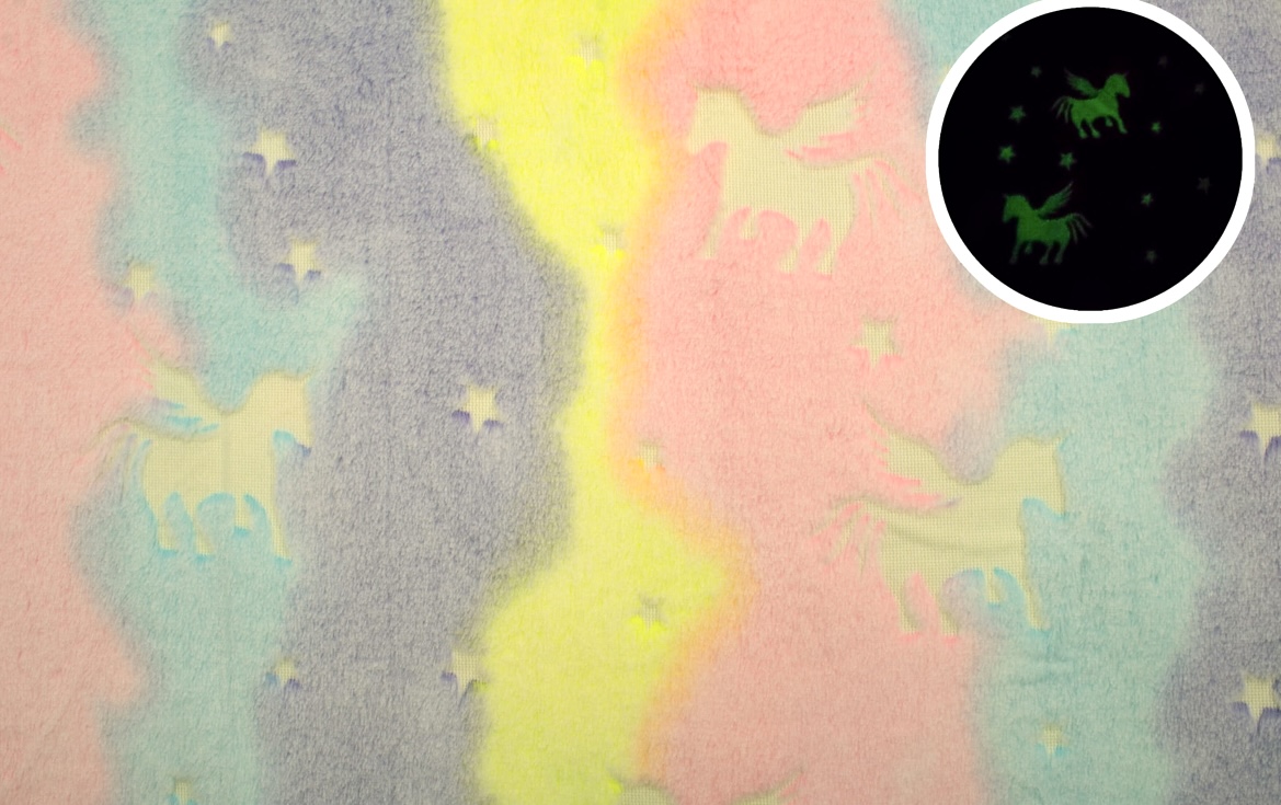 Kocyk pluszowy wzór Pegaz neonowy świecący w ciemności 130 x 155 cm